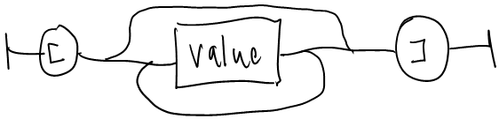 An array is an ordered collection of values. An array begins with a left bracket [ and ends with a right bracket ].